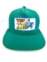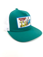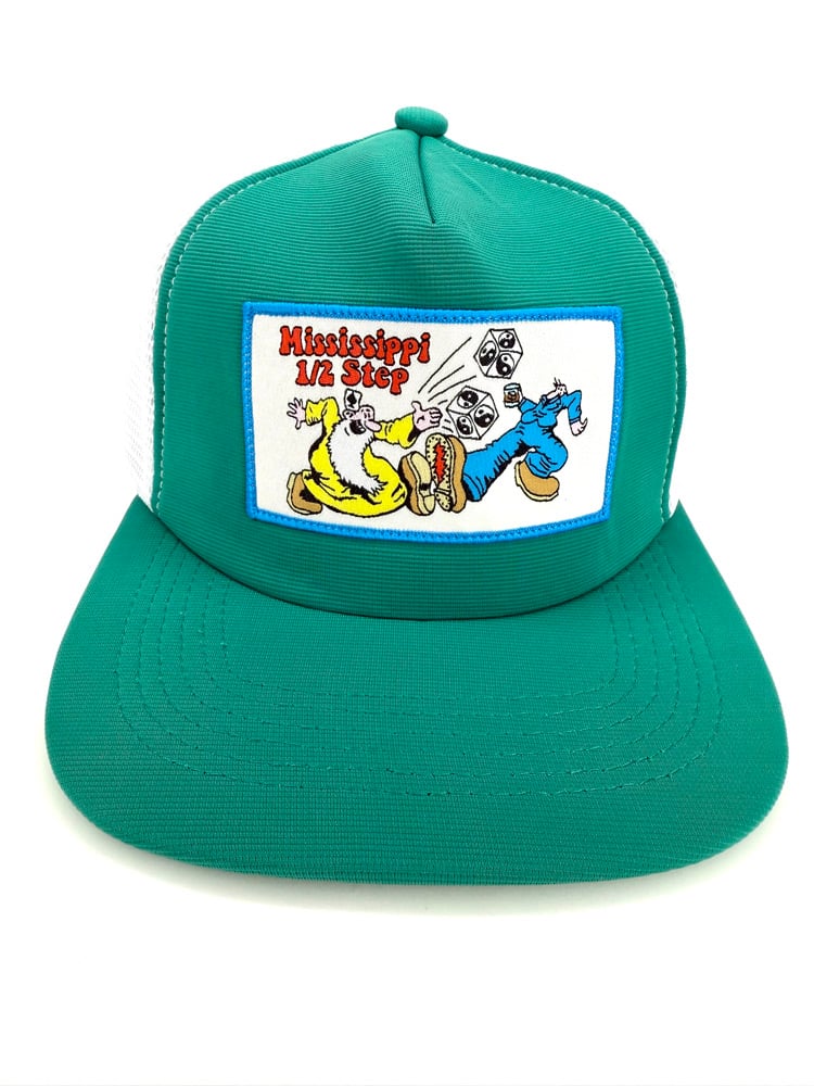 Custom made, with the same materials they used to use in the late 70s/early 80s. Grid textured poly front panel/brim, thin foam backing, unstructured, medium/large profile, flat brim (can be rolled). Weaved patch design. Plastic SnapBack closure. No foamy blanks, Cut & sew, small run, only 50 made ๐๐นโก๏ธ
