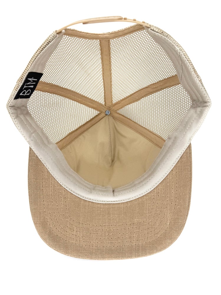 Custom made, hemp body/brim, thin foam backing, unstructured, medium/large profile, flat brim (can be rolled). Weaved patch design. Plastic SnapBack closure. No foamy blanks, Cut & sew, small run, only 50 made ๐๐นโก๏ธ