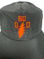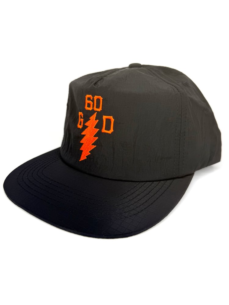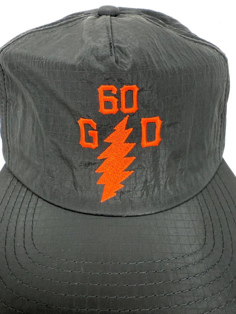 Custom made, medium profile, unstructured, flat brim (can be easily rolled), black, quick drying, water repellent, rip stop nylon with mesh gauze interior, embroidered GD60 design, black snap back adjustable strap. Cut & Sew, 150 made ๐๐นโก๏ธ