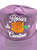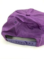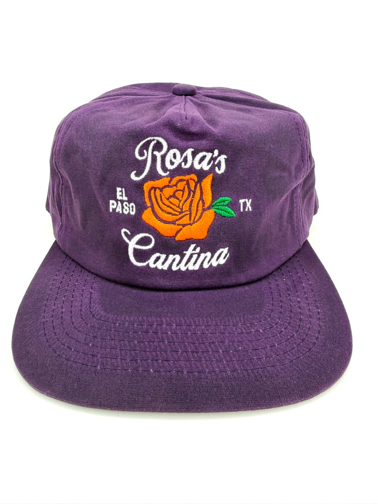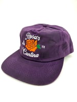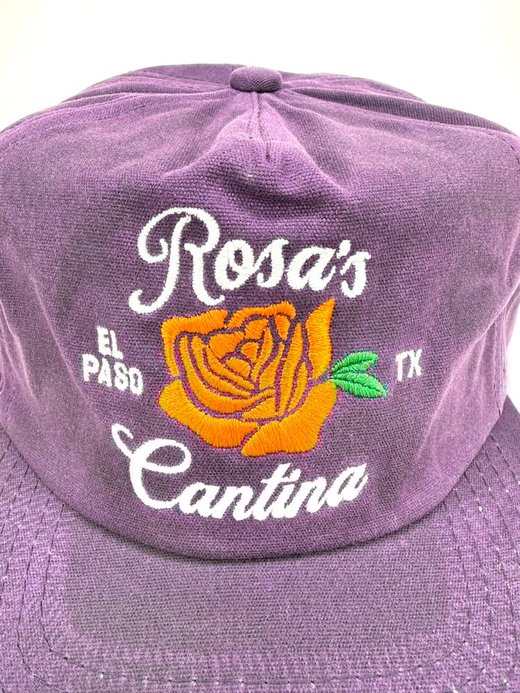 Custom made, unstructured, medium profile, flat brim (can be rolled), high quality, purple water resistant, waxed canvas with matching snapback adjustable strap. Orange embroidered rose. Distressing in canvas is normal. Cut & sew, 50 made ๐๐นโก๏ธ