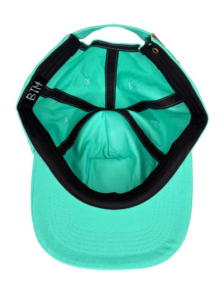 Custom made, unstructured, medium profile, flat brim (can be rolled), high quality, mint twill with embroidered design. Twill adjustable strap closure. Cut & sew, 100 made ๐๐นโก๏ธ