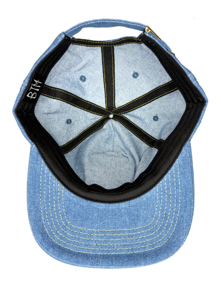 Custom made, unstructured, medium/large profile, flat brim (can be easily rolled), high quality medium wash denim with custom PEGGY-O patch, contrast stitching throughout, denim strap closure. Cut & sew, 100 made ๐๐นโก๏ธ
